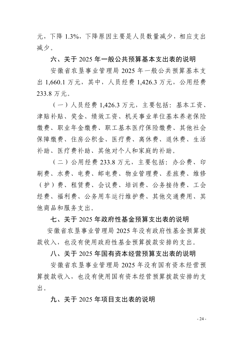 安徽省农垦事业管理局2024年度部门决算